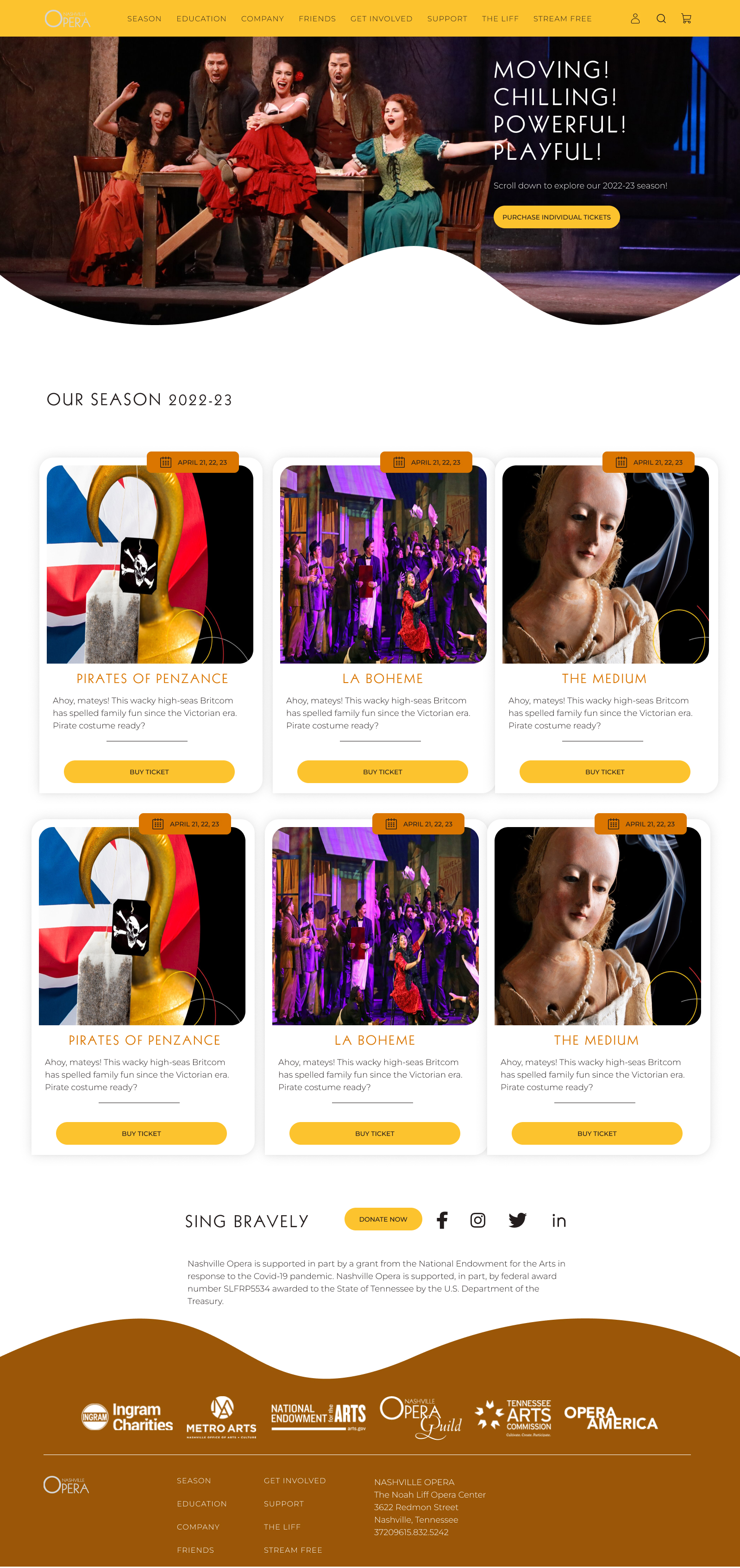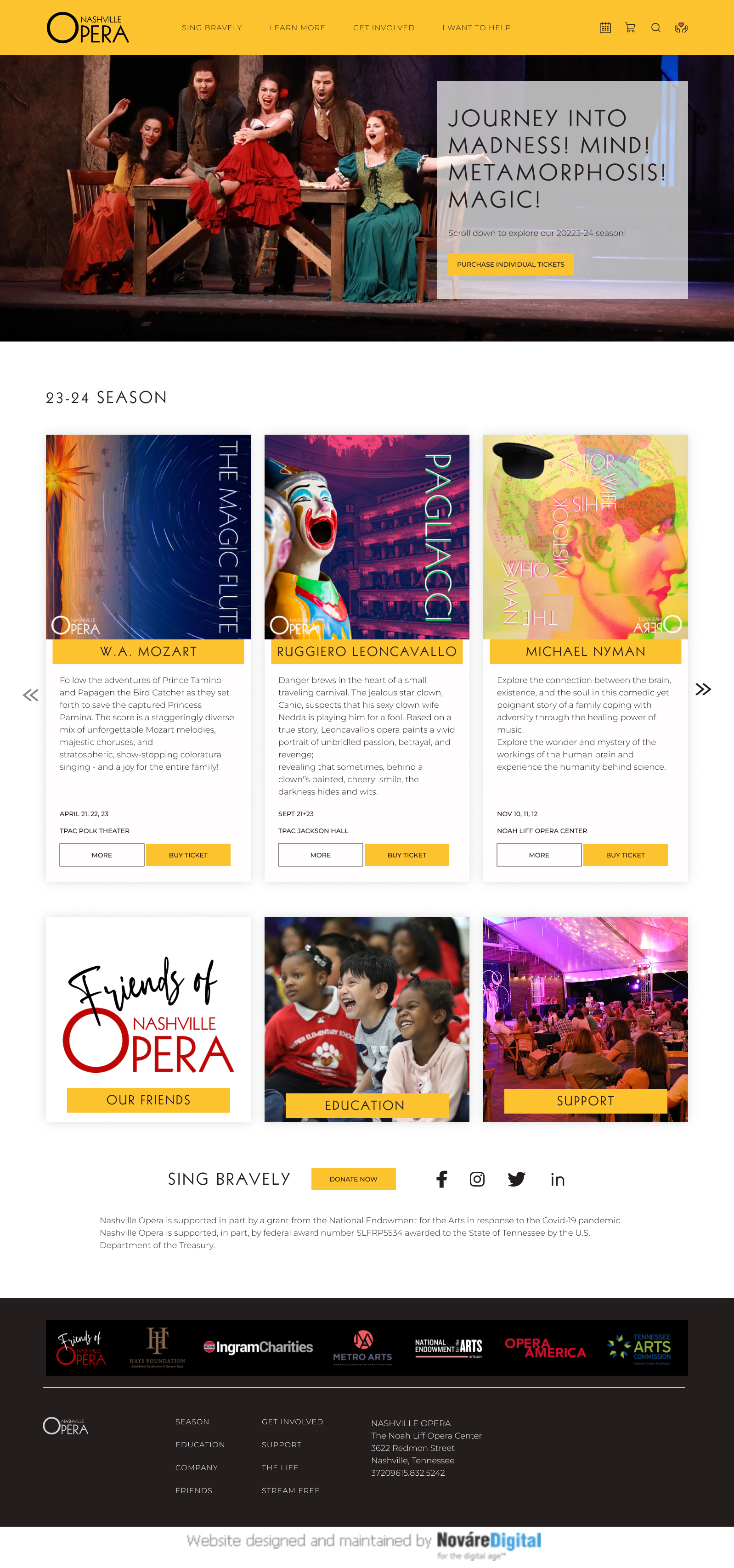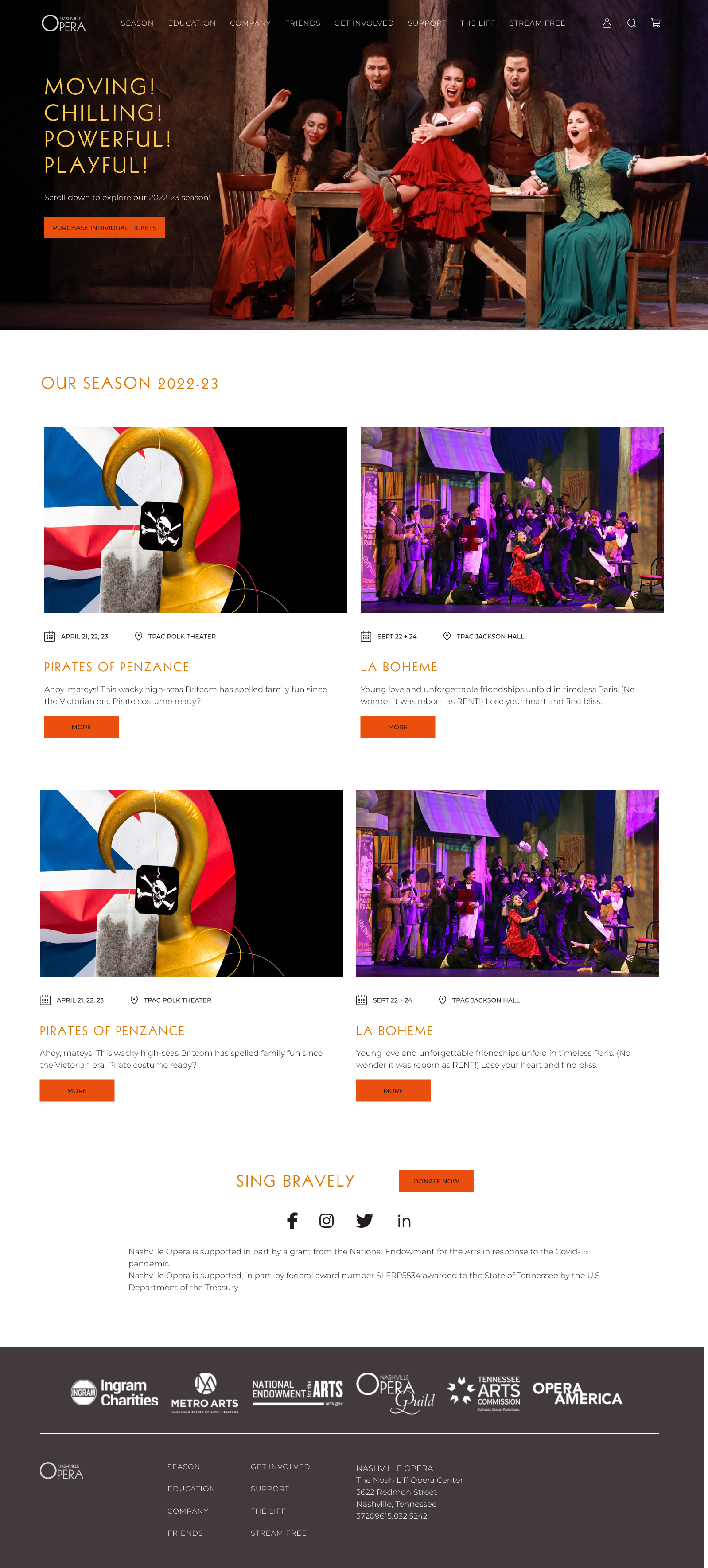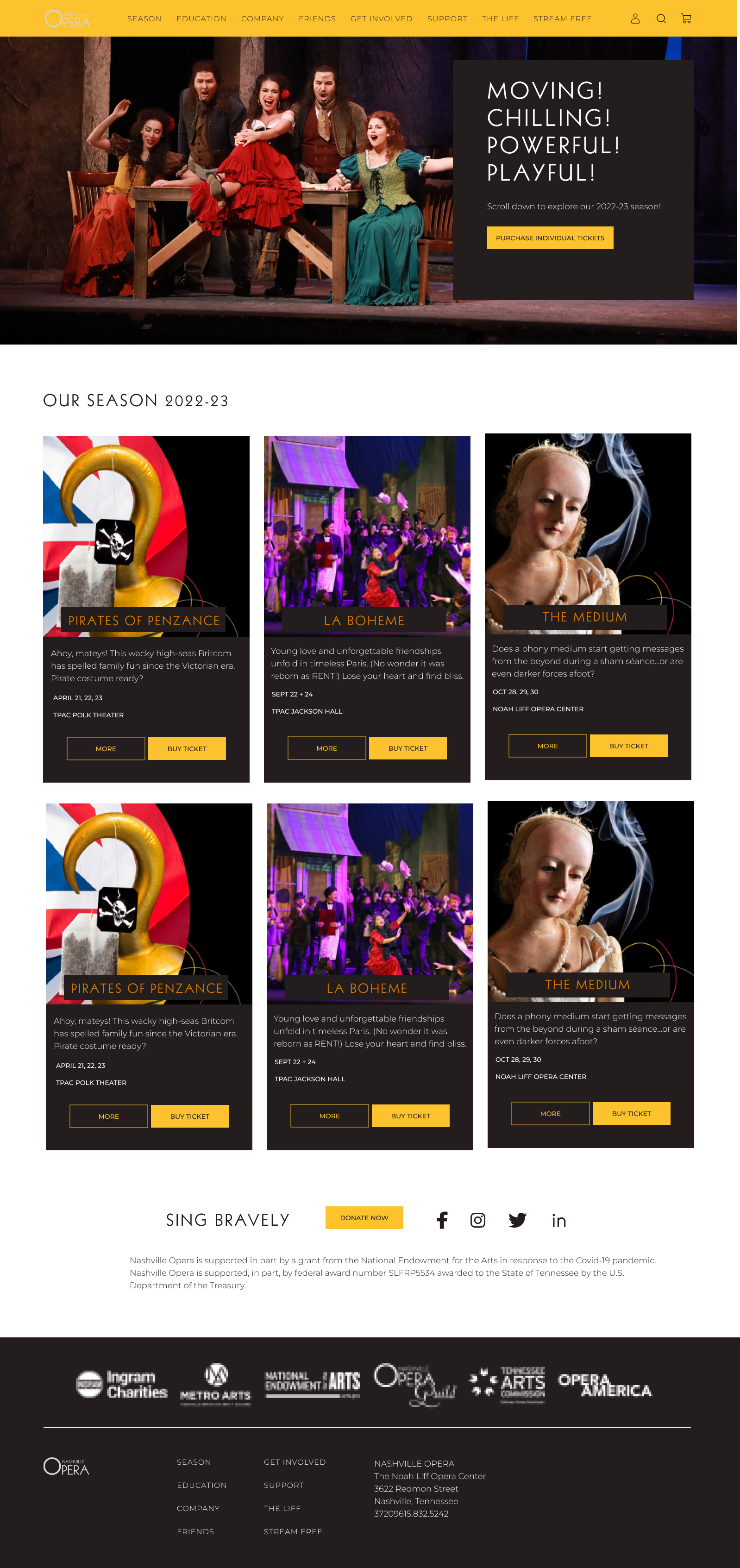 The main image is set up as a carousel. Attached are variations of images that can be inserted. Nashville Opera will be able to create and insert their own images. Image dimensions will be provided.